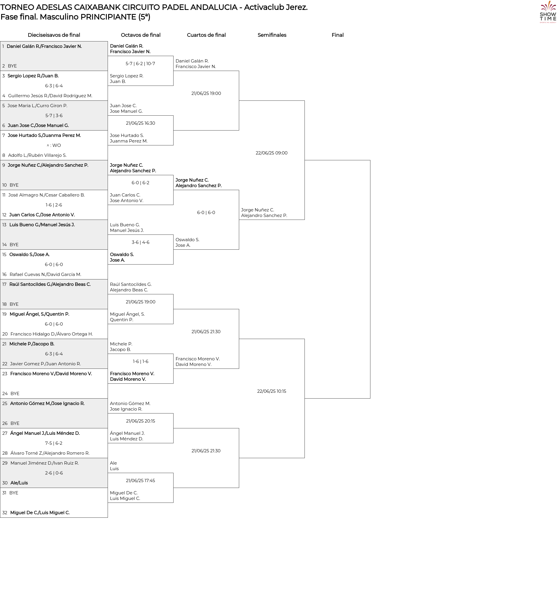 Cuadro principal Masculino PRINCIPIANTE (5ª)